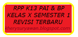 Demikianlah postingan kali ini, Semoga file RPP k13 Pendidikan Agama Islam dan Budi Pekerti Kelas 10 SMA semester 1 revisi terbaru yang telah saya bagikan,dapat bermanfaat buat anda yang sedang mengajar mata pelajaran Pendais & BP di kelas 10 SMA.