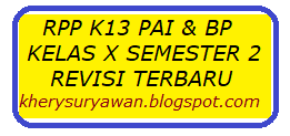 RPP k13 Pendidikan Agama dan Budi Pekerti Kelas X Semester 2 yang akan saya bagikan pada postingan ini sudah merupakan rpp hasil revisi terbaru sehingga anda dapat menggunakannya untuk keperluan di sekolah anda masing-masing.